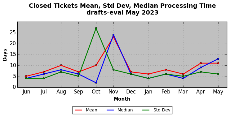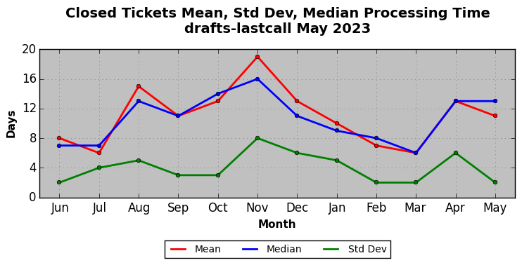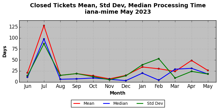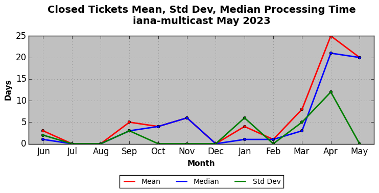 The statistics below are offered to measure IANA's fulfillment of the goals established in the ICANN / IANA - IETF MoU Supplemental Agreement. Further details on these goals and statistics can be found by reviewing the agreement.