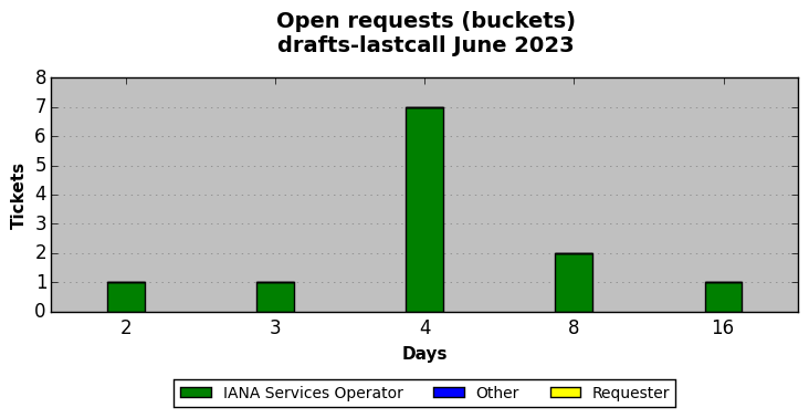 June 2023Due to the nature of resource request reviews, ICANN/IANA and the IETF community are jointly responsible for cooperatively managing the resource request process. ICANN/IANA has control over the functions it performs directly, e.g., receiving requests, making sure they are syntactically and semantically sensible, forwarding the requests to Designated Experts where appropriate, creating and modifying the registries, etc. The IETF community has direct or indirect control over functions performed by third parties, including IESG Designated Experts, the IESG, the IAB, the RFC Editor, and the requester. As such, the processing of requests has a “gross processing time” calendar days goal established for each function and a “net processing time” calendar days goal to reflect time expended directly by ICANN/IANA.