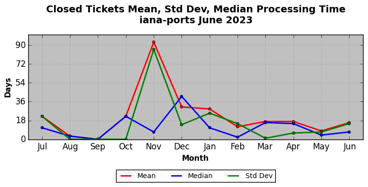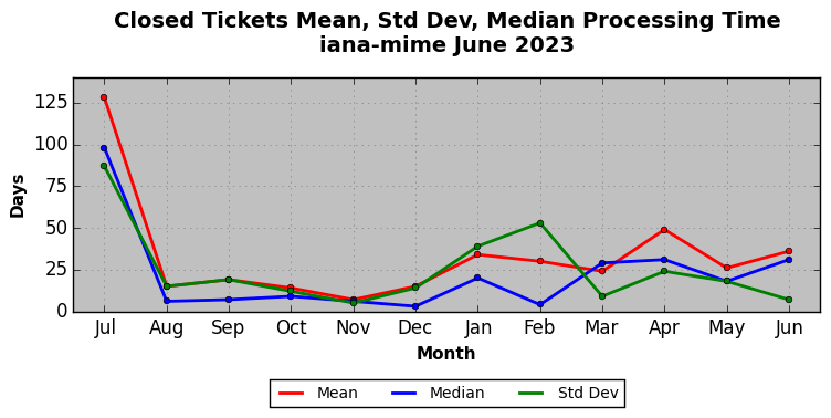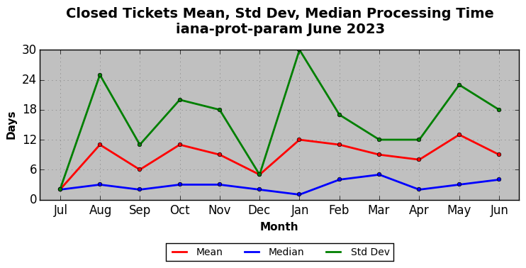 The statistics below are offered to measure IANA's fulfillment of the goals established in the ICANN / IANA - IETF MoU Supplemental Agreement. Further details on these goals and statistics can be found by reviewing the agreement.