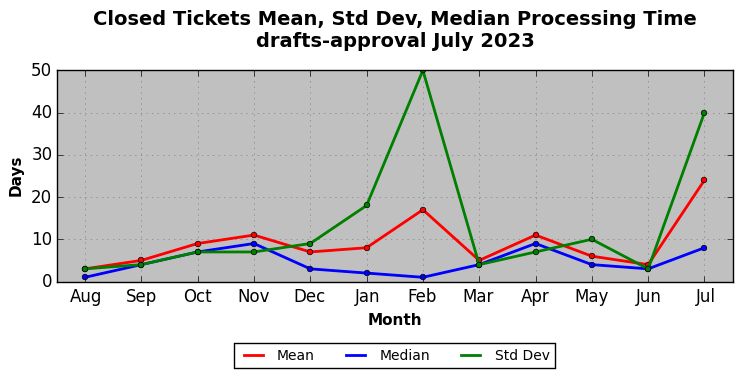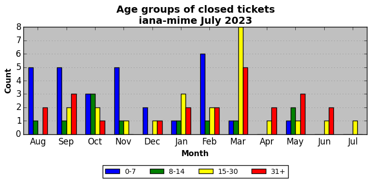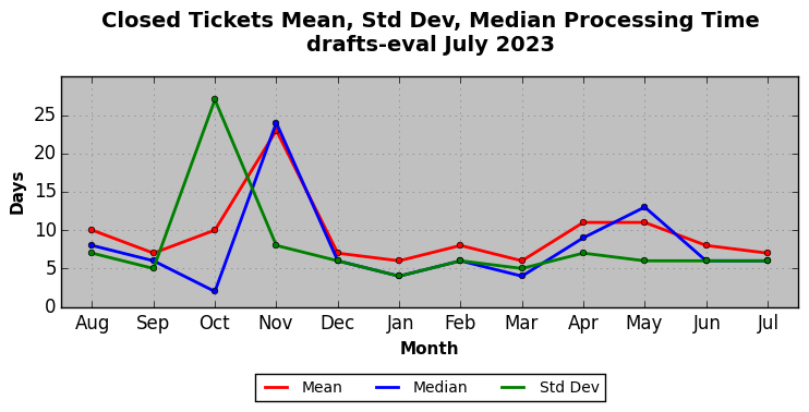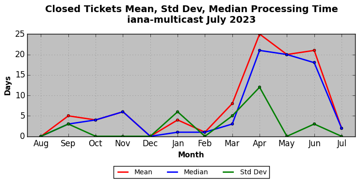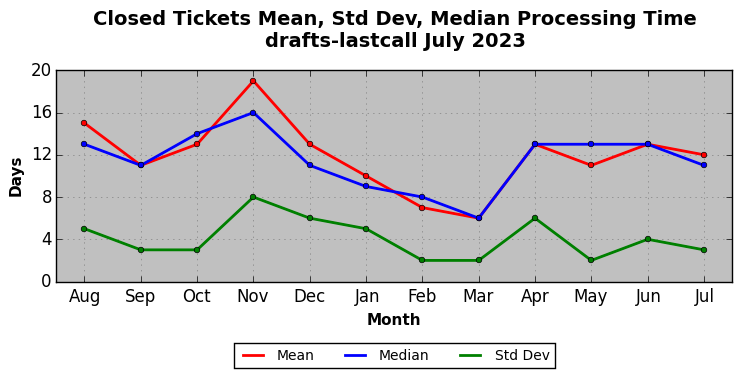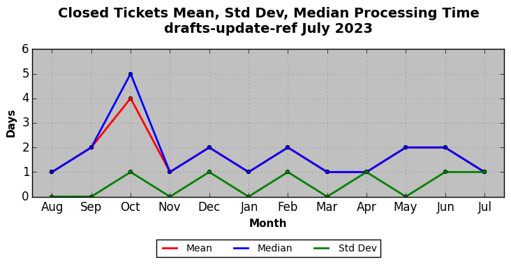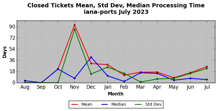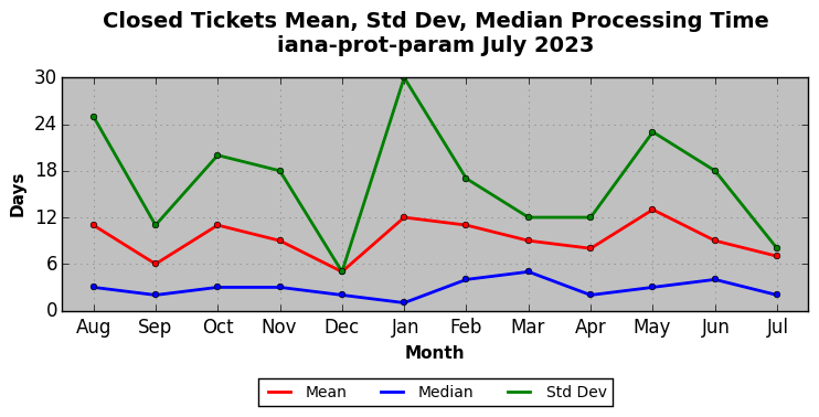 The statistics below are offered to measure IANA's fulfillment of the goals established in the ICANN / IANA - IETF MoU Supplemental Agreement. Further details on these goals and statistics can be found by reviewing the agreement.
