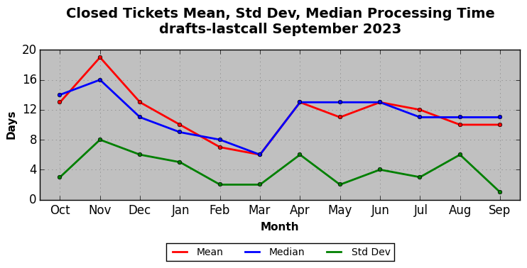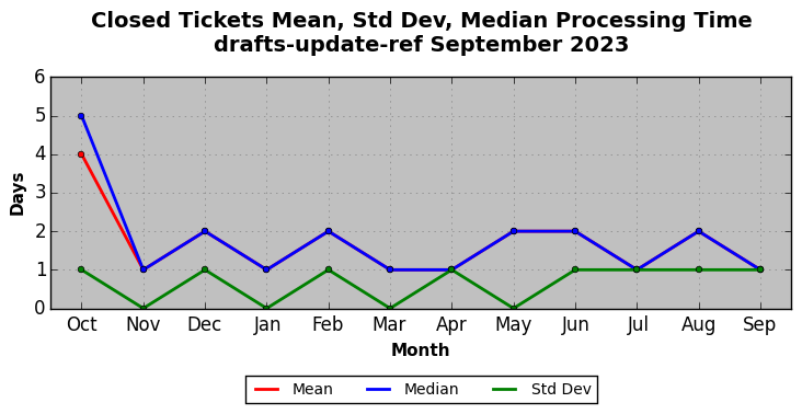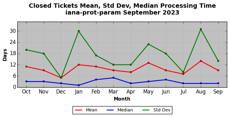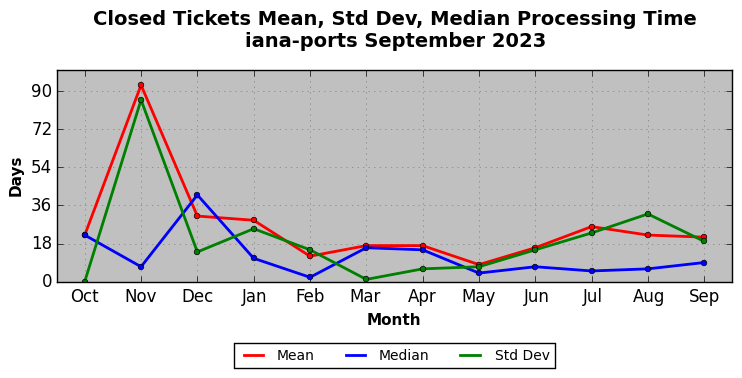 The statistics below are offered to measure IANA's fulfillment of the goals established in the ICANN / IANA - IETF MoU Supplemental Agreement. Further details on these goals and statistics can be found by reviewing the agreement.