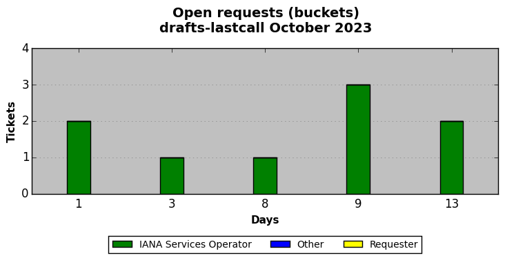 October 2023Due to the nature of resource request reviews, ICANN/IANA and the IETF community are jointly responsible for cooperatively managing the resource request process. ICANN/IANA has control over the functions it performs directly, e.g., receiving requests, making sure they are syntactically and semantically sensible, forwarding the requests to Designated Experts where appropriate, creating and modifying the registries, etc. The IETF community has direct or indirect control over functions performed by third parties, including IESG Designated Experts, the IESG, the IAB, the RFC Editor, and the requester. As such, the processing of requests has a “gross processing time” calendar days goal established for each function and a “net processing time” calendar days goal to reflect time expended directly by ICANN/IANA.
