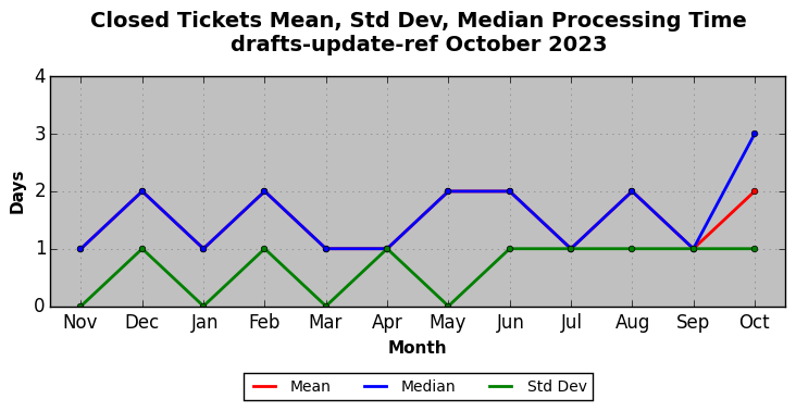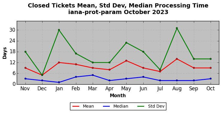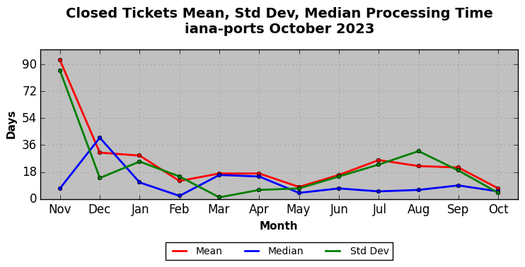 The statistics below are offered to measure IANA's fulfillment of the goals established in the ICANN / IANA - IETF MoU Supplemental Agreement. Further details on these goals and statistics can be found by reviewing the agreement.