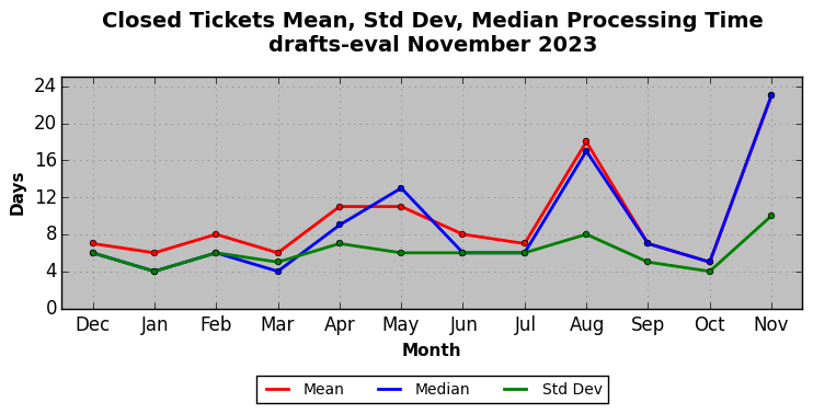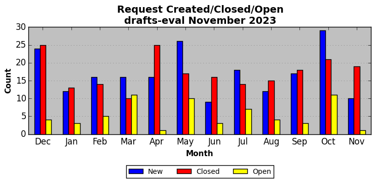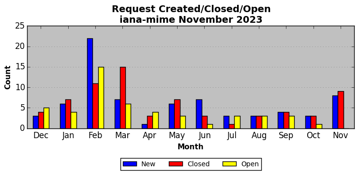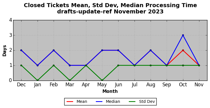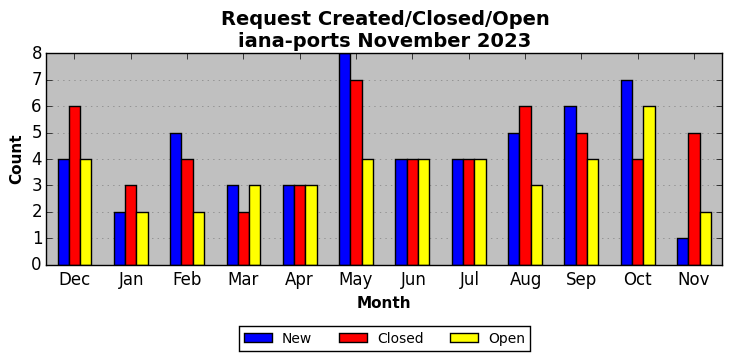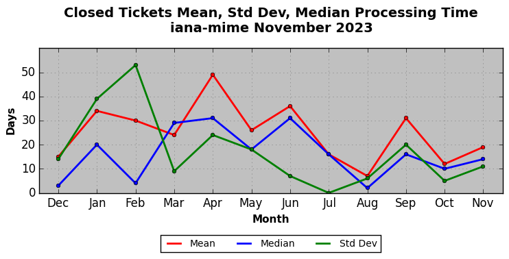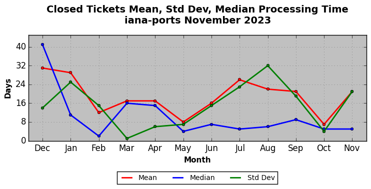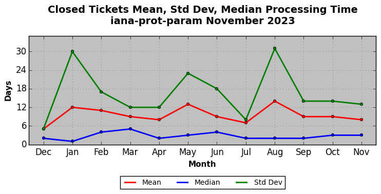 The statistics below are offered to measure IANA's fulfillment of the goals established in the ICANN / IANA - IETF MoU Supplemental Agreement. Further details on these goals and statistics can be found by reviewing the agreement.