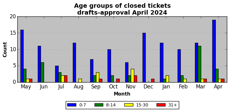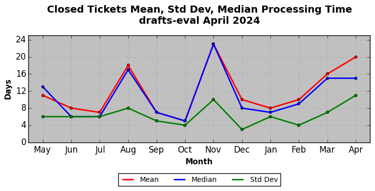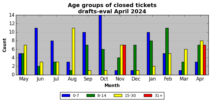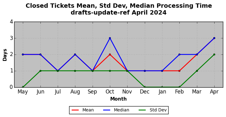 The statistics below are offered to measure IANA's fulfillment of the goals established in the ICANN / IANA - IETF MoU Supplemental Agreement. Further details on these goals and statistics can be found by reviewing the agreement.