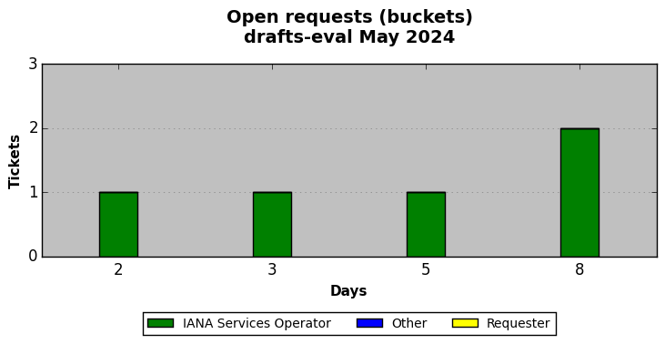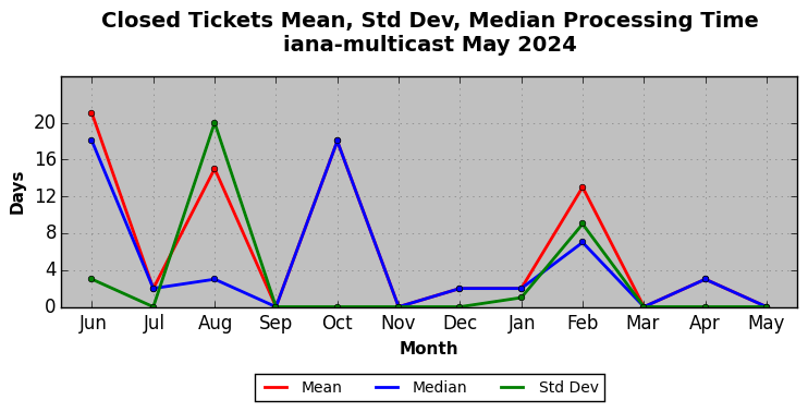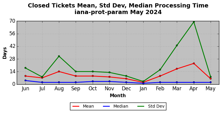 May 2024Due to the nature of resource request reviews, ICANN/IANA and the IETF community are jointly responsible for cooperatively managing the resource request process. ICANN/IANA has control over the functions it performs directly, e.g., receiving requests, making sure they are syntactically and semantically sensible, forwarding the requests to Designated Experts where appropriate, creating and modifying the registries, etc. The IETF community has direct or indirect control over functions performed by third parties, including IESG Designated Experts, the IESG, the IAB, the RFC Editor, and the requester. As such, the processing of requests has a “gross processing time” calendar days goal established for each function and a “net processing time” calendar days goal to reflect time expended directly by ICANN/IANA.
