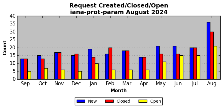 August 2024Due to the nature of resource request reviews, ICANN/IANA and the IETF community are jointly responsible for cooperatively managing the resource request process. ICANN/IANA has control over the functions it performs directly, e.g., receiving requests, making sure they are syntactically and semantically sensible, forwarding the requests to Designated Experts where appropriate, creating and modifying the registries, etc. The IETF community has direct or indirect control over functions performed by third parties, including IESG Designated Experts, the IESG, the IAB, the RFC Editor, and the requester. As such, the processing of requests has a “gross processing time” calendar days goal established for each function and a “net processing time” calendar days goal to reflect time expended directly by ICANN/IANA.