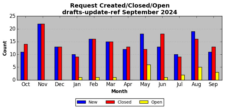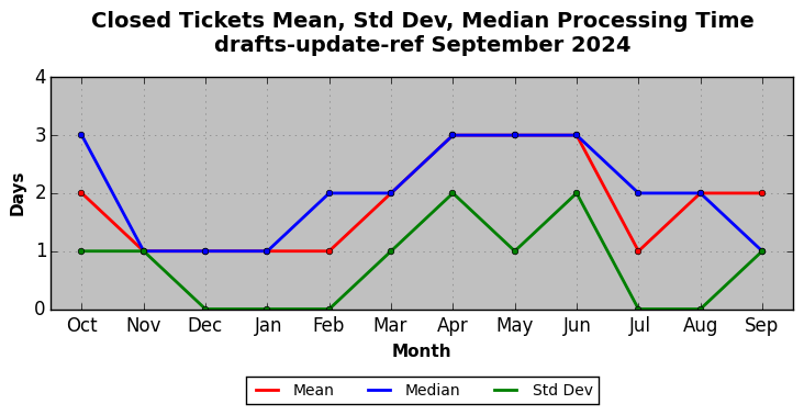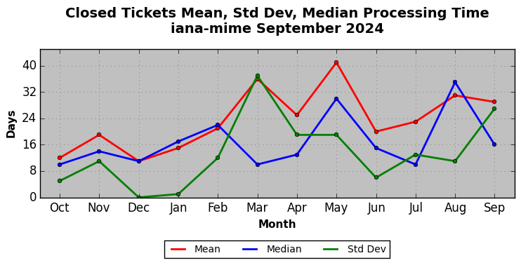 The statistics below are offered to measure IANA's fulfillment of the goals established in the ICANN / IANA - IETF MoU Supplemental Agreement. Further details on these goals and statistics can be found by reviewing the agreement.