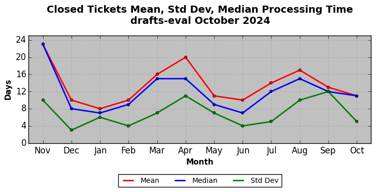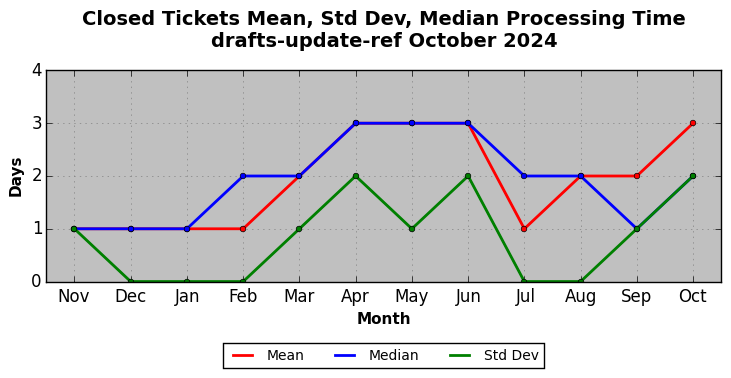 The statistics below are offered to measure IANA's fulfillment of the goals established in the ICANN / IANA - IETF MoU Supplemental Agreement. Further details on these goals and statistics can be found by reviewing the agreement.