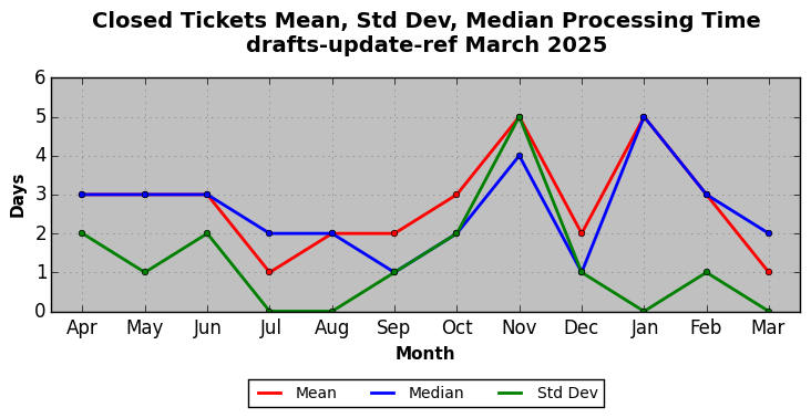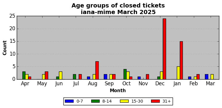 The statistics below are offered to measure IANA's fulfillment of the goals established in the ICANN / IANA - IETF MoU Supplemental Agreement. Further details on these goals and statistics can be found by reviewing the agreement.