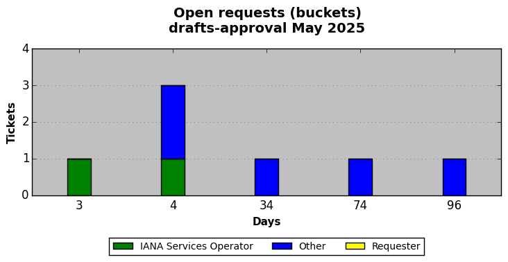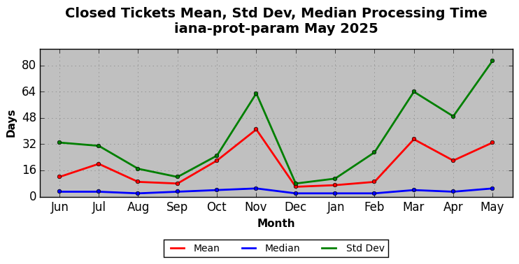 May 2025Due to the nature of resource request reviews, ICANN/IANA and the IETF community are jointly responsible for cooperatively managing the resource request process. ICANN/IANA has control over the functions it performs directly, e.g., receiving requests, making sure they are syntactically and semantically sensible, forwarding the requests to Designated Experts where appropriate, creating and modifying the registries, etc. The IETF community has direct or indirect control over functions performed by third parties, including IESG Designated Experts, the IESG, the IAB, the RFC Editor, and the requester. As such, the processing of requests has a “gross processing time” calendar days goal established for each function and a “net processing time” calendar days goal to reflect time expended directly by ICANN/IANA.