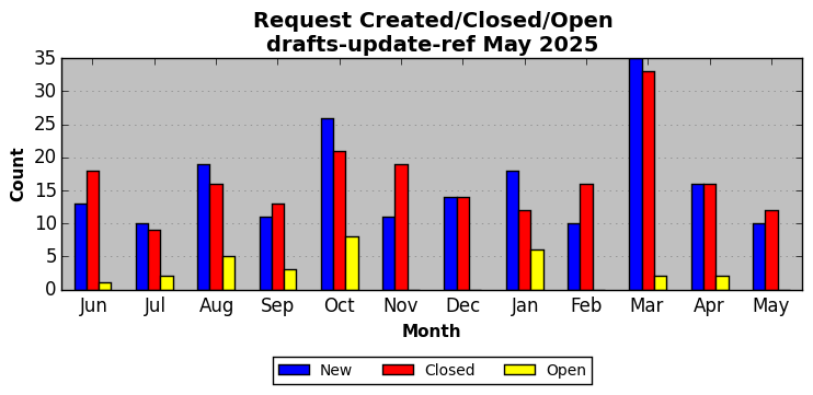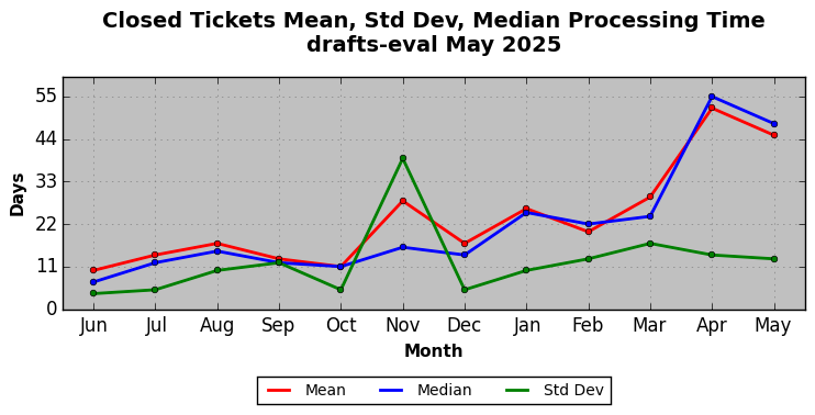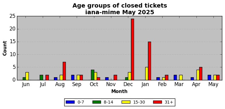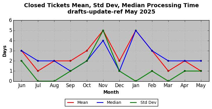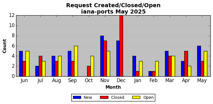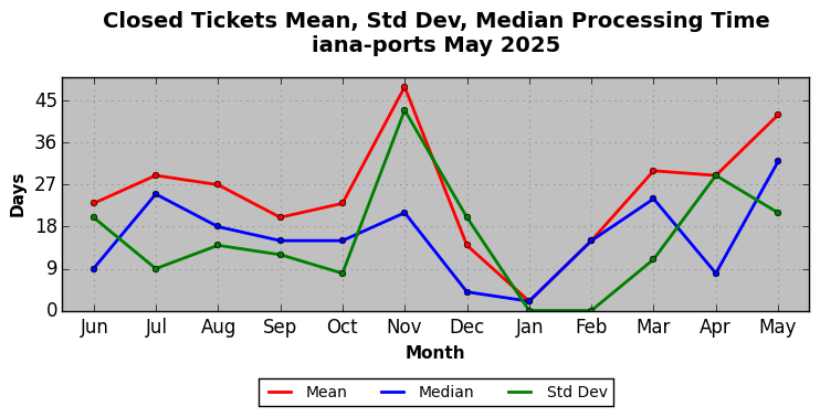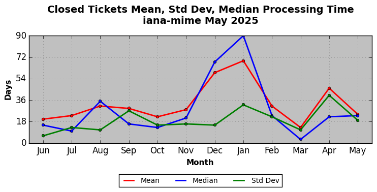The statistics below are offered to measure IANA's fulfillment of the goals established in the ICANN / IANA - IETF MoU Supplemental Agreement. Further details on these goals and statistics can be found by reviewing the agreement.