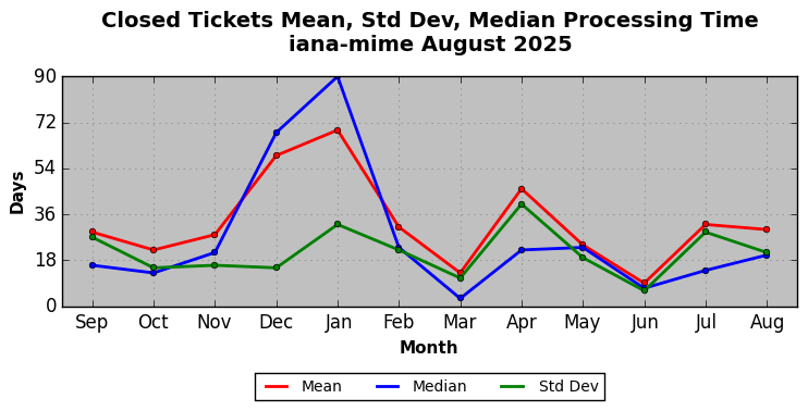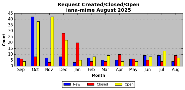 The statistics below are offered to measure IANA's fulfillment of the goals established in the ICANN / IANA - IETF MoU Supplemental Agreement. Further details on these goals and statistics can be found by reviewing the agreement.