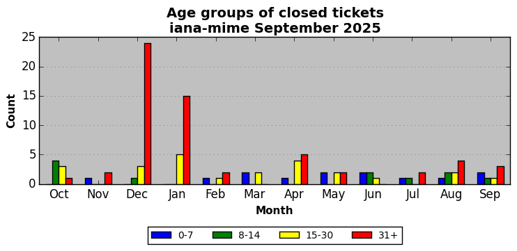 The statistics below are offered to measure IANA's fulfillment of the goals established in the ICANN / IANA - IETF MoU Supplemental Agreement. Further details on these goals and statistics can be found by reviewing the agreement.
