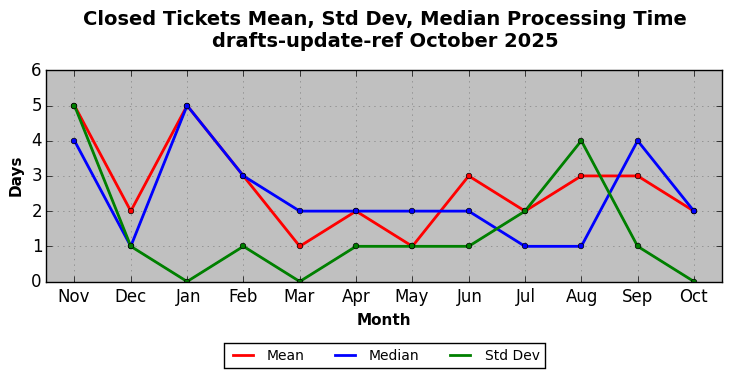 The statistics below are offered to measure IANA's fulfillment of the goals established in the ICANN / IANA - IETF MoU Supplemental Agreement. Further details on these goals and statistics can be found by reviewing the agreement.
