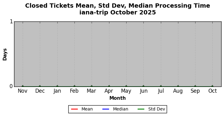 October 2025Due to the nature of resource request reviews, ICANN/IANA and the IETF community are jointly responsible for cooperatively managing the resource request process. ICANN/IANA has control over the functions it performs directly, e.g., receiving requests, making sure they are syntactically and semantically sensible, forwarding the requests to Designated Experts where appropriate, creating and modifying the registries, etc. The IETF community has direct or indirect control over functions performed by third parties, including IESG Designated Experts, the IESG, the IAB, the RFC Editor, and the requester. As such, the processing of requests has a “gross processing time” calendar days goal established for each function and a “net processing time” calendar days goal to reflect time expended directly by ICANN/IANA.